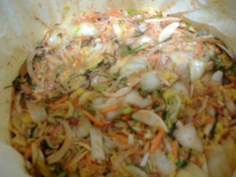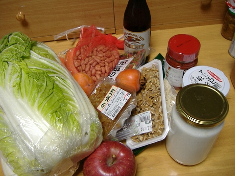 白菜1個・あみ・元気の実・漬物こぶ・クルミ・裂きイカ・中華くらげそれにキムチの元を購入。
