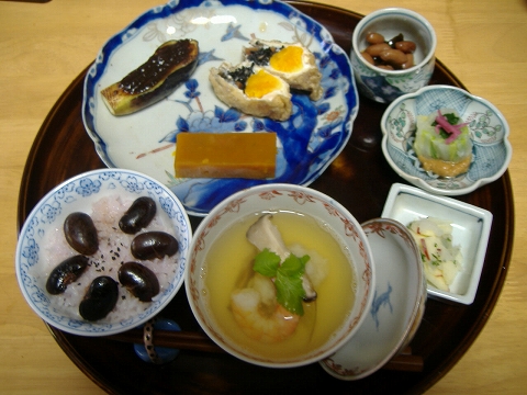 ピーナツは昆布と煮ること3時間、ひじきは油揚げに卵と一緒に入れてがんもふうに、白菜とほうれん草はゴマしょうゆのおひたしにしてお客さまに。