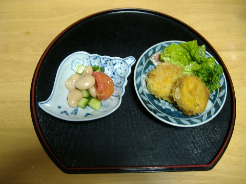 いただいた白いんげんで、コロッケとサラダをつくりました。