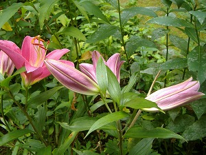 山百合は、門のすぐそばの苔庭のにありましたが、いつの日にか7~8Mはなれたロックガーデンの脇に移動してきました。球根の百合がどうして移動したのか不思議でなりません。苔庭の百合はなくなりロックガーデンの百合は毎年姿をだします。